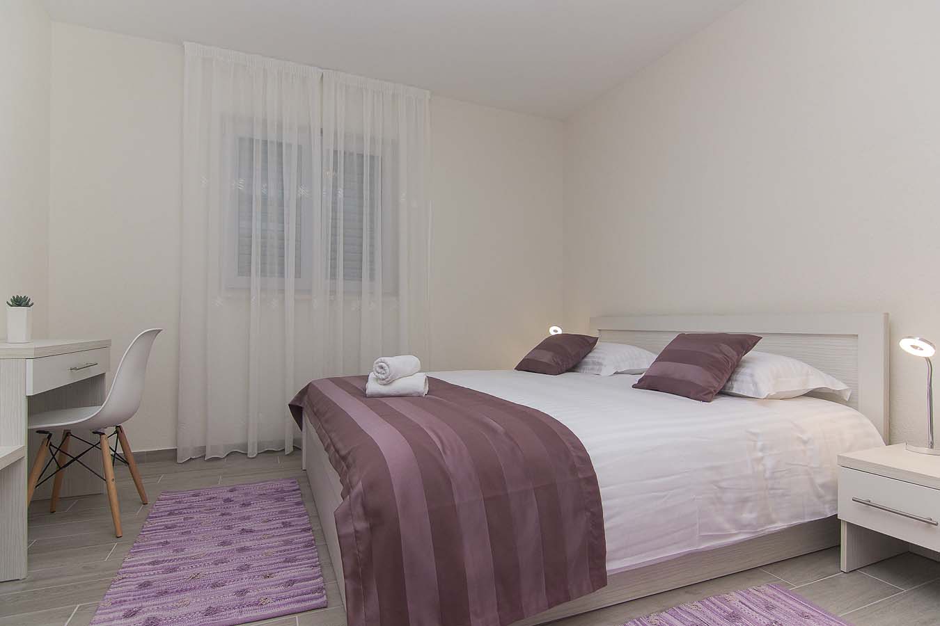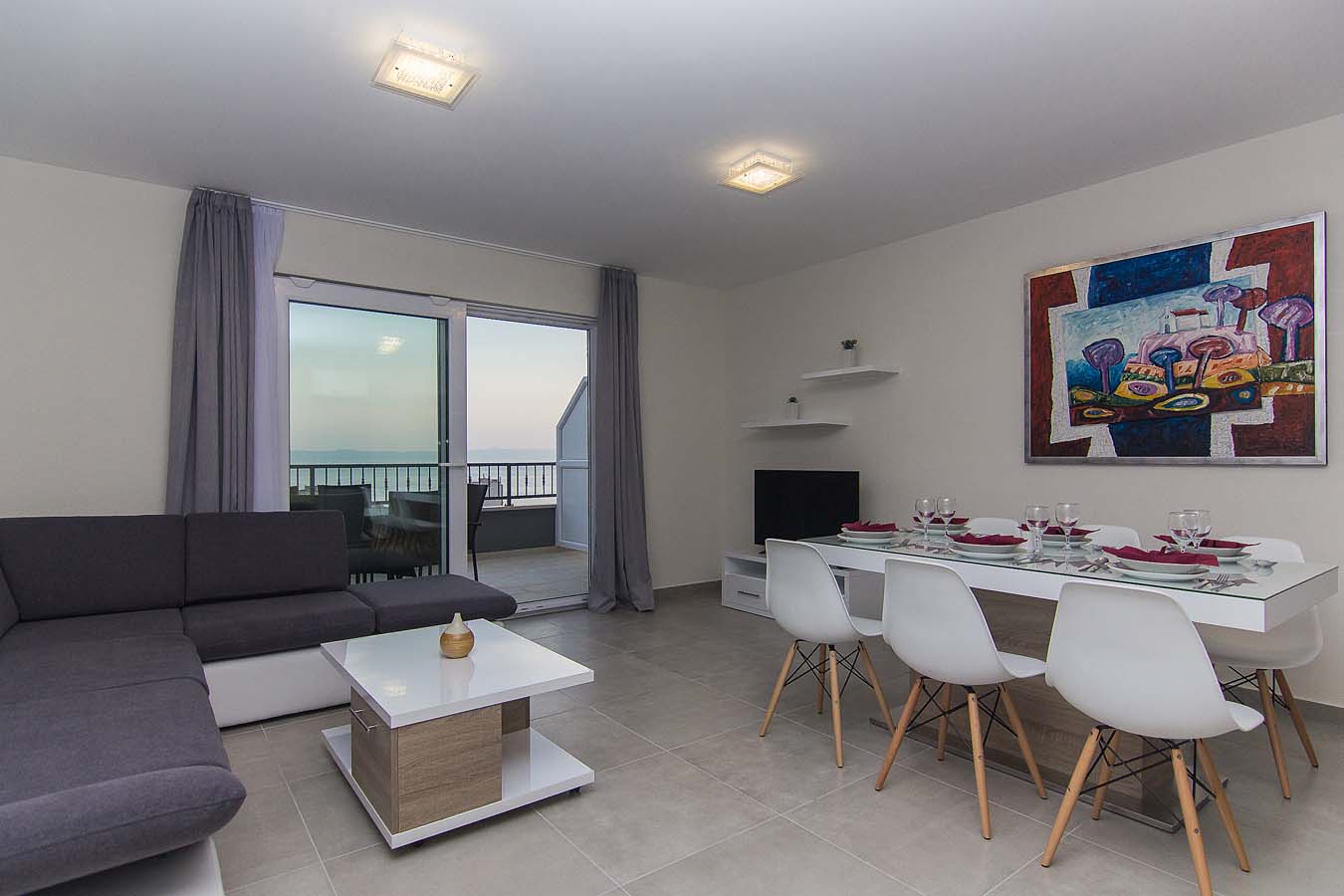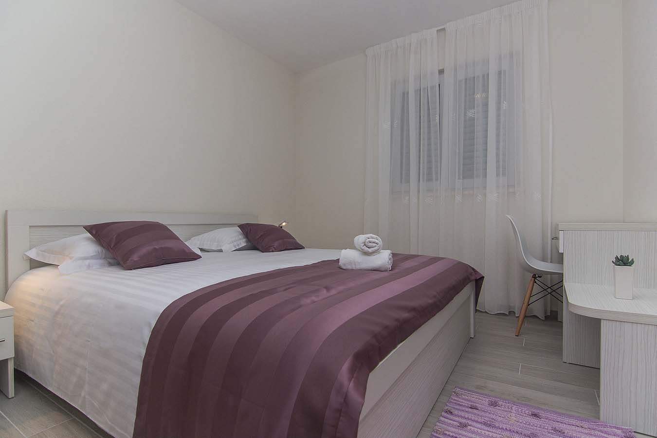 Luksuzno opremljen apartman na trećem katu vile pruža smještaj za do 8 osoba. Apartman se sastoji od tri spavaće sobe sa bračnim krevetima. U dnevnom boravku nalazi se kauč na koji se može smjestiti jedna osoba.